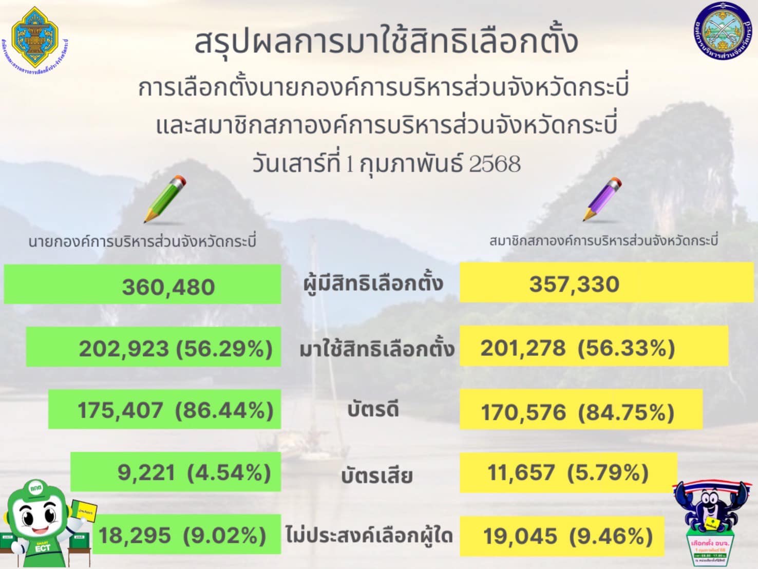 เมื่อวันเสาร์ที่ 1 กุมภาพันธ์ 2568 มีการเลือกตั้งนายกองค์การบริหารส่วนจังหวัดกระบี่ และสมาชิกสภาองค์การบริหารส่วนจังหวัดกระบี่ ซึ่งมีประชาชนออกมาใช้สิทธิเลือกตั้งในครั้งนี้เป็นจำนวนมาก